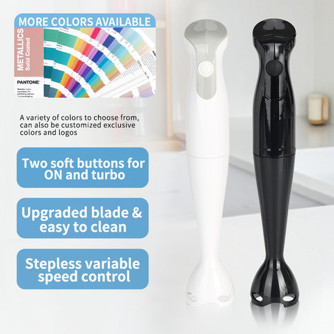 Licuadora de mano de inmersión de cuerpo de plástico ligero brillante, barra eléctrica para batidos, sopa, comida para bebés, almacenamiento fácil de limpiar